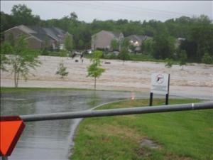 A few pictures from my neighborhood. They have shut down most of our roads now and power has been out for 5 hours (YAY cabin fever kids!) We went out to get gas for the generator so I snapped a few shots of what it looks like in our area which is not bad at all compared to further down the road. They are reporting 6-10 feet of rushing water on a lot of the downtown area streets. Right now we are powering the fridge, tv and internet and so the kids are pretty happy. We can only run a few things at a time so we are having to bounce things around.