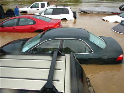 I have been keeping family and friends up to date with Twitter as the waters are still rising and roads are becoming impossible to use. Our current house is on a hill, so other than some leaking in the house and the backyard being flooded where the dog won’t even go to the bathroom (I don’t know why he won’t…he could at least doggie paddle) we are safe. The Dream Home is also on a VERY large hill, so that house is safe too.