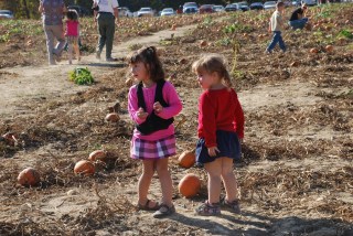 I took the girls to a birthday party/pumpkin patch over the weekend and we had a lot of fun there! There was hay rides (hello hay fever) train rides and pumpkin picking. Those two beauties above are Bug and Belly doing the “Found a pumpkin” dance.