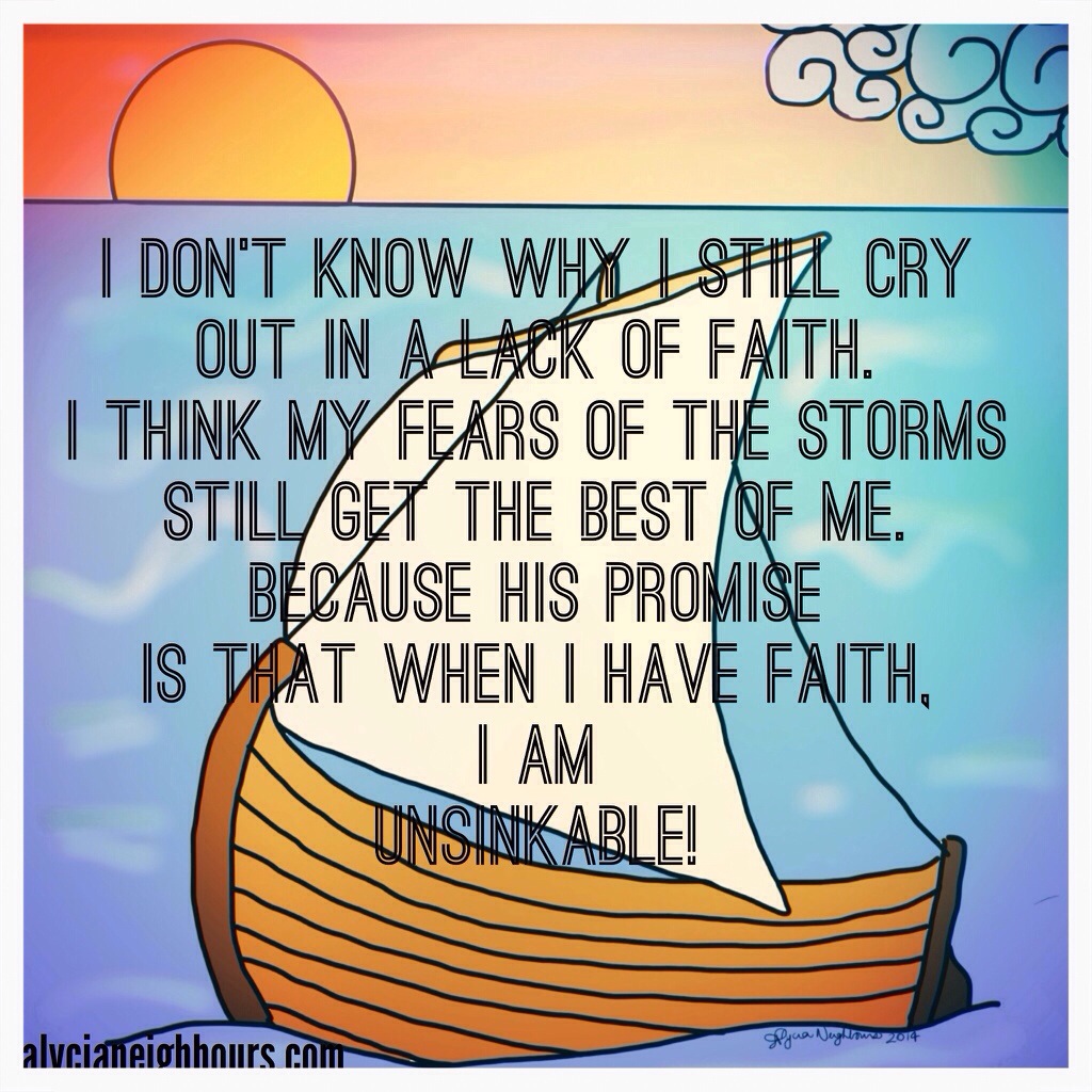 I don’t know why I still cry out in a lack of faith. I think my fears of the storms still get the best of me. Because His promise is that when I have faith, I am unsinkable.